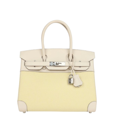 Hermès Birkin 30 Nata Swift and Jaune Poussin Toile Palladium Hardware